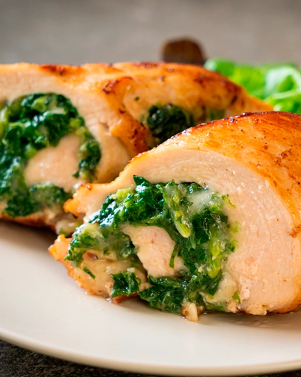 Pechuga de pollo con salsa de espinaca y queso